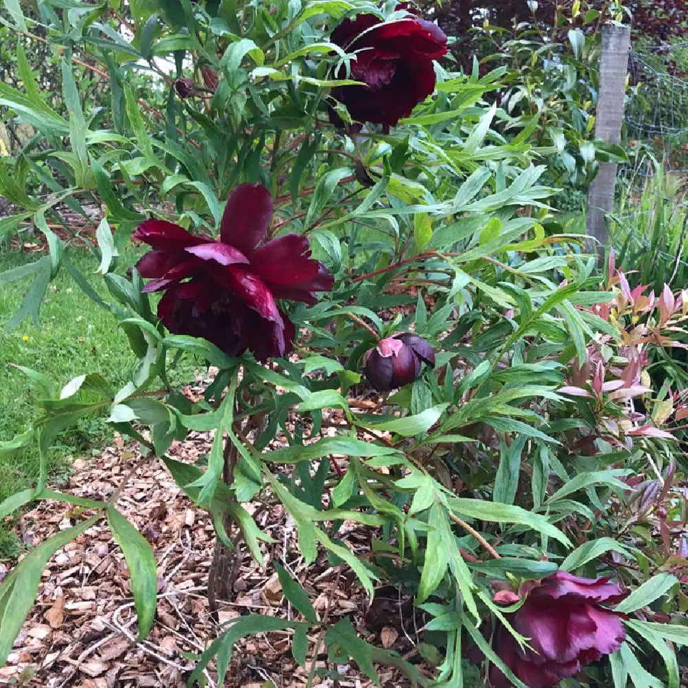 Plantation de PAEONIA suffruticosa 'Chu Wu'